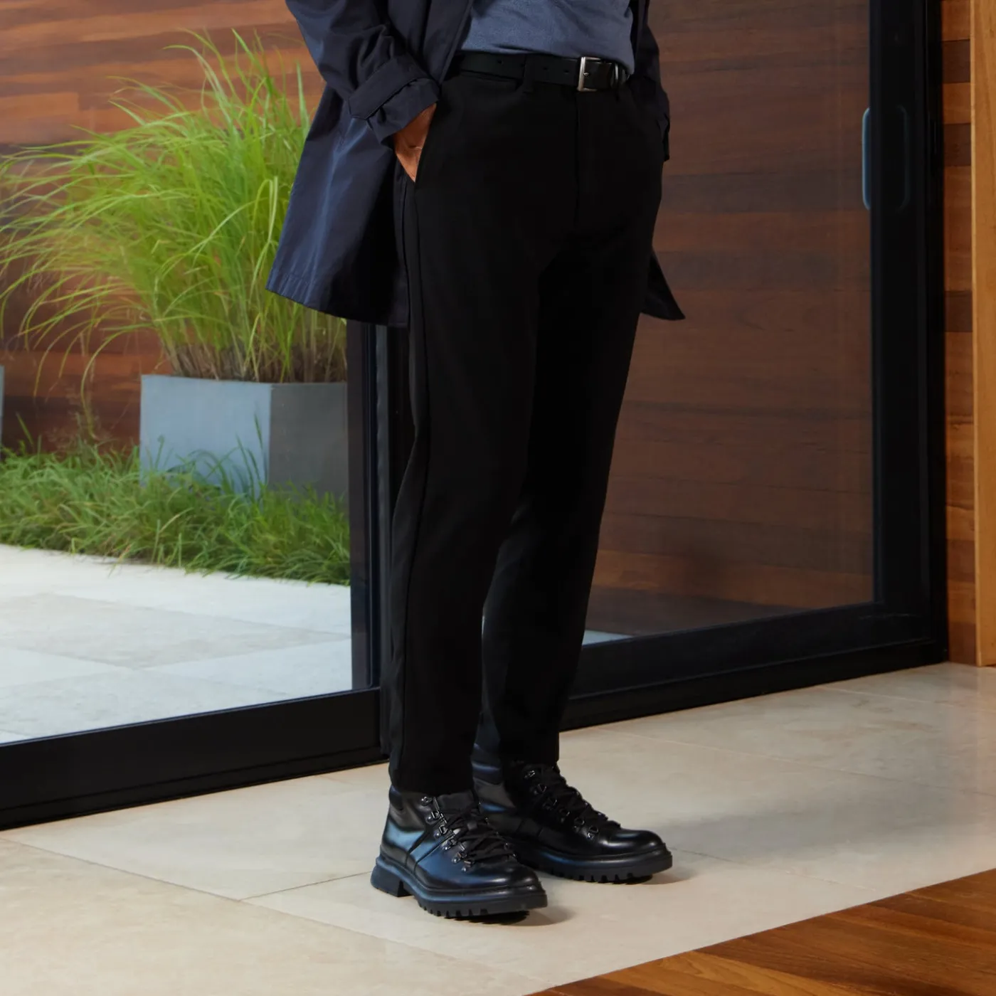 Designed in waxed suede/nappa (grey or cognac) or calf leather/nylon (black), the Edwin boot conveys a sturdy sensibility. With D-ring hardware and a lace-up closure, it features a nylon loop and padded back counter. The logo detail adds a subtle accent.